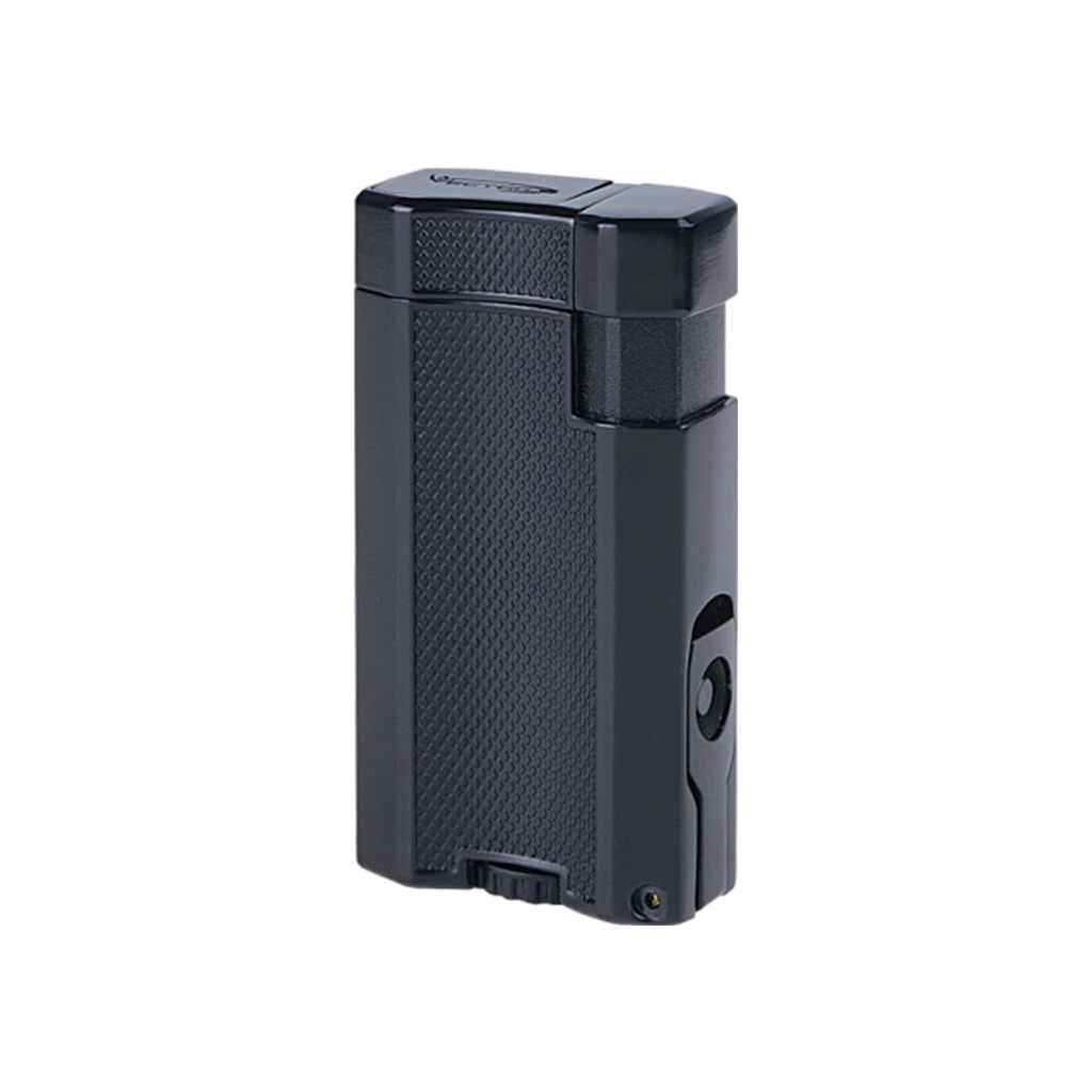 O Isqueiro Vector Vmotion 2 chamas, é sólido e leve, com revestimento metálico. Chama dupla Jet-Flame, à prova do vento. Furador embutido e suporte para charuto.