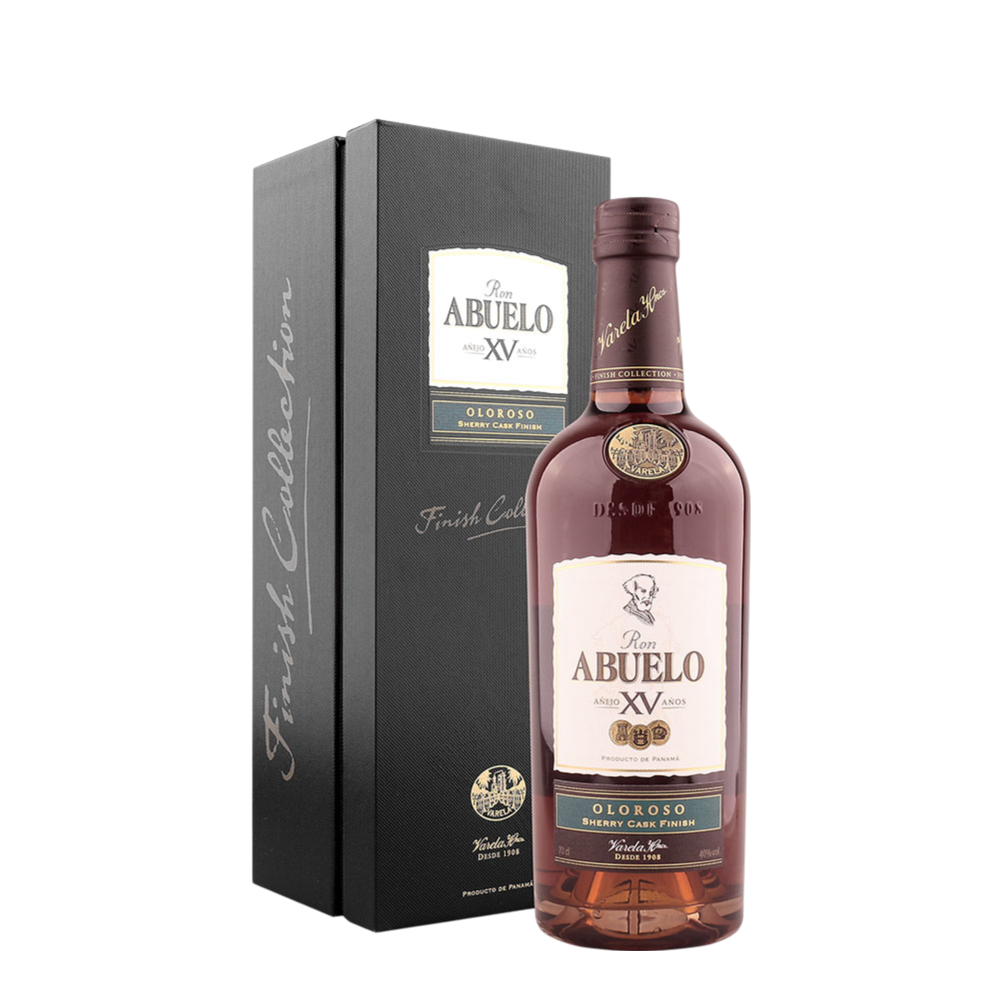 Rum Abuelo Oloroso Sherry Cask Finish 15 years da gama “Finish Collection” da Ron Abuelo de 15 anos, concluído em barris de oloroso Sherry. Rum elegante e sofisticado de cor âmbar escuro, assente em notas sumptuosas de citrinos, amêndoas torradas e madeira defumada. Ideal para presentear um amante de rum requintado!